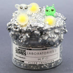The Cyber Slimes UFO Slime analysis gives us insight into the super advanced materials used to craft alien technology. The metal used here is of unknown origin but does contain similar molecular structures to that of asteroids from deep outside the Milky Way. This smokey scented slime definitely gives the impression of a UFO landing. But watch out, there might be some alien stowaways, looking to take over your house!